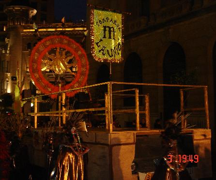 19:00 Convocatòria de penons de les comparses davant del Teatre Metropol. La Comparsa La Unió anirà amb el seu penó.