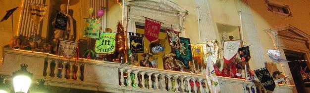 20.30 h, aproximadament. Cloenda de la Rua de Lluïment: col·locació dels penons i estendards al balcó de l’Ajuntament i espectacular Vol del Doctor Mistela amb la seva xeringota, des de la façana municipal fins a la bóta monumental. |
