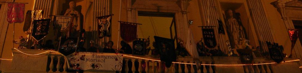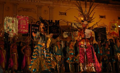 Rebuda del rei Carnestoltes a càrreg de Cayo Largo i reina Concubina a càrreg de Som i Serem de Tarragona 2010 amb el penó de la Comparsa. |